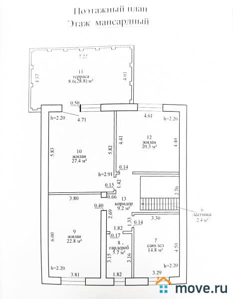 3 большие комнаты на втором этаже: 27,4 м?, 20,3 м? и 22,8 м?